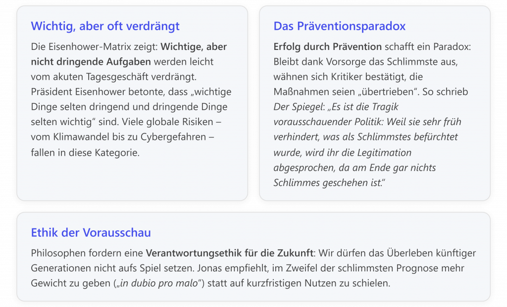 Eisenhower-Matrix, Präventionsparadoxon und langfristige Risiken im Fokus